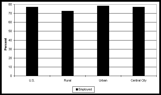 Chart II-23a: Percent of U.S. Persons Using the Internet at Work By Employment By U.S., Rural, Urban, and Central City Areas